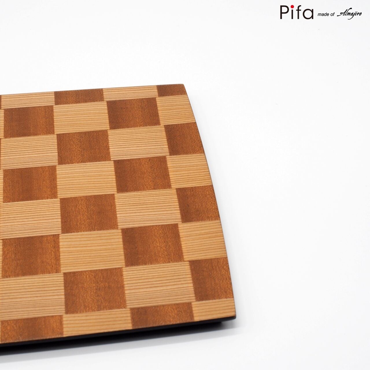 こちらは市松柄の杉製トレー「長プレート 小(市松 杉 サペリ)」です。おしゃれで使い勝手の良いトレーをお探しの方におすすめです。